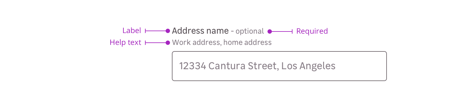 - Label + requirement + help text + input