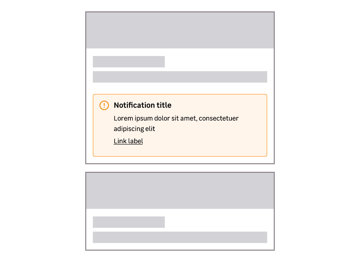 - One or some actions (optional): A link or button(s) can be used when users need to do an action.