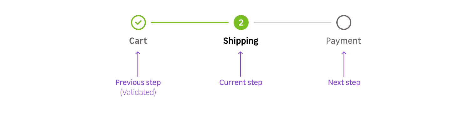 A stepper visually indicates the progress of a user's journey on pre-defined steps to complete.